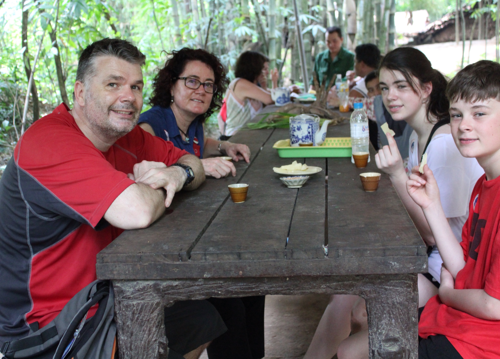 Then we were taken for tea....and to be encouraged to look at clothing designs in the the fabric rooms. We explained that we were leaving at 1pm as arranged with the driver. Five minutes later the driver appears and says no problem if we need to stay longer! I was content loading up with silk scarves but Rich and the kids were all soon measured and then selected fabrics. An hour later the order is made and we were are told to come back at 3pm to collect, and if anything needs adjusting it will be sent to our hotel. We had talked about getting some clothes made but didn't really think we could manage it in the time we had so the family were happy to have this treat after all.